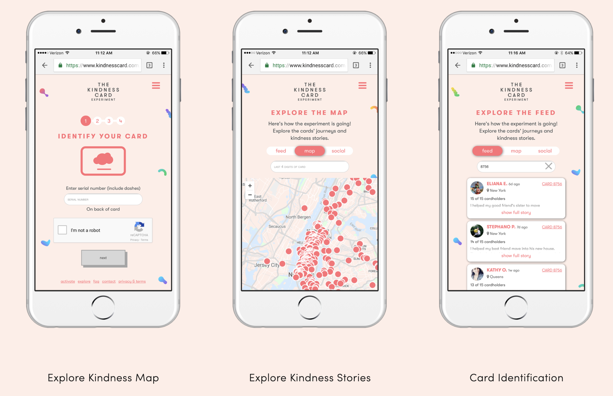 For one month, a NYC non-profit gave away 5,000 Kindness Cards to New Yorkers seen doing kind acts. Each card had a $10 reward that reloaded when passed from person to person. To get access to the reward, cardholders had to input the story and location of their kind act online. This data enabled a digital experience showing kindness spread in NYC and beyond in real-time.